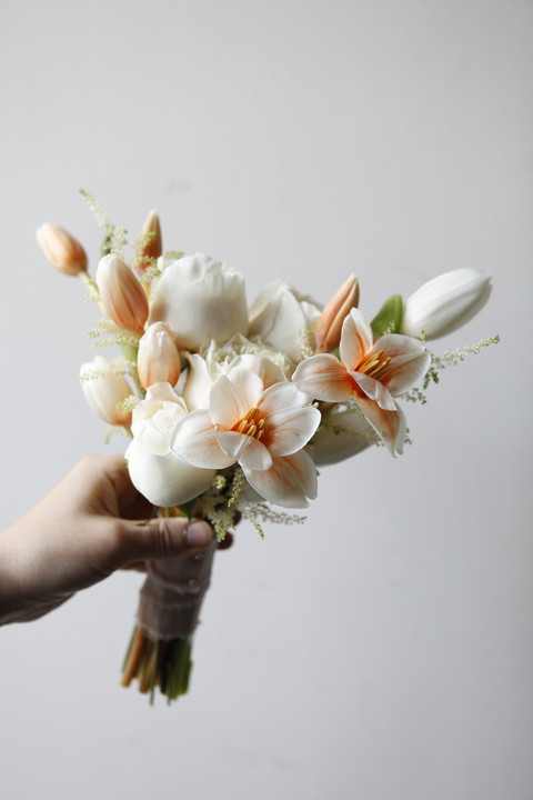 D76 화이트튤립+연보라 포인트 부케