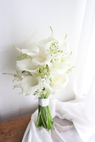화이트 카라와 아스틸베를 믹스해 라인감이 살아있는 느낌으로 만든 부케입니다. 깔끔하고 환한 느낌을 선호하는 신부님께 추천드립니다.